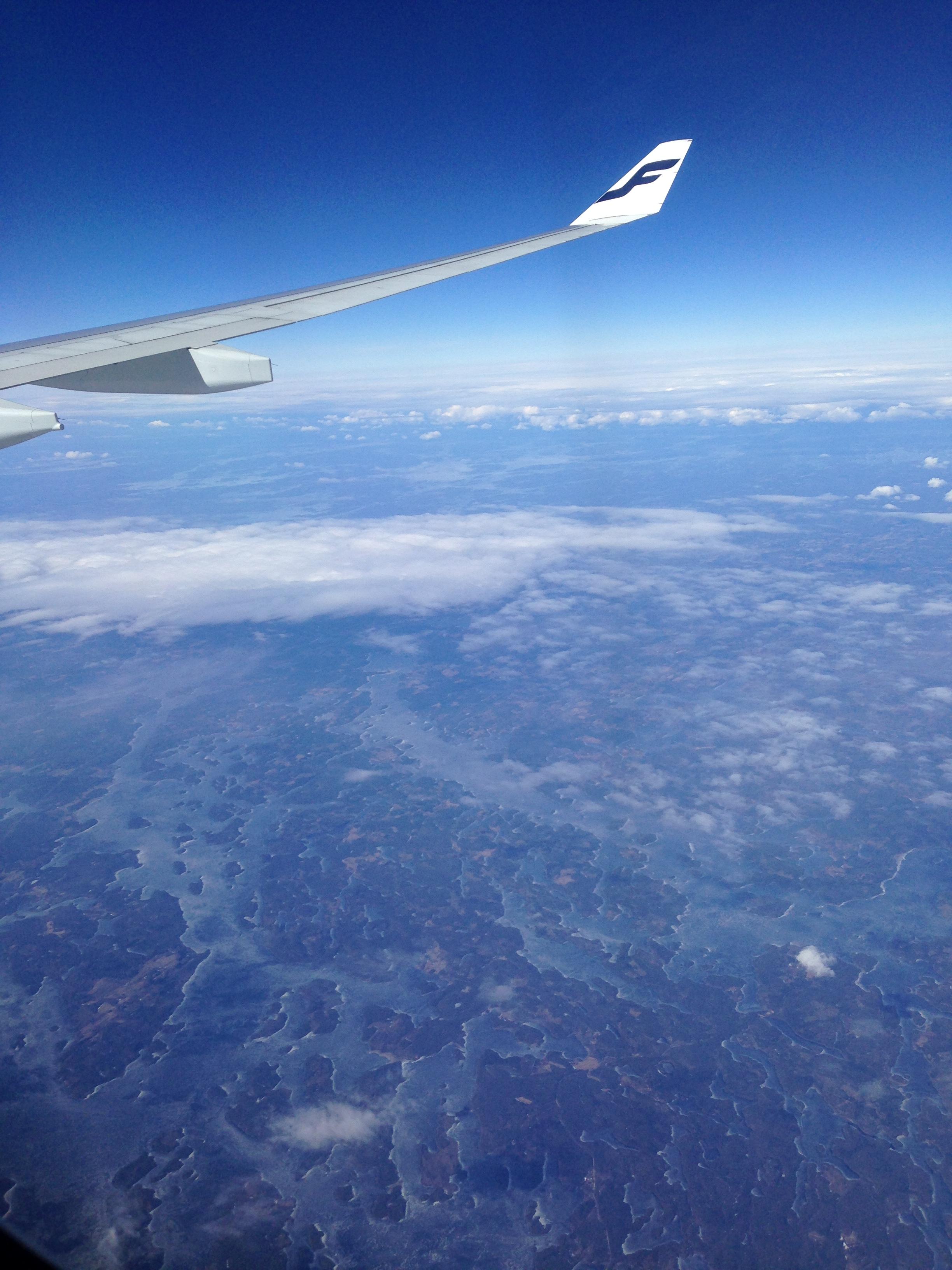 핀란드 헬싱키에 거의 다 온 모양입니다. 비행기가 고도를 낮추자, 북유럽 풍의 곧게 솟은 나무들과 호수가 한눈에 들어오네요.