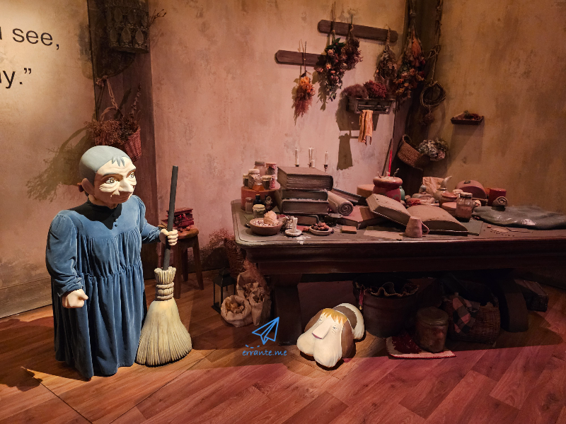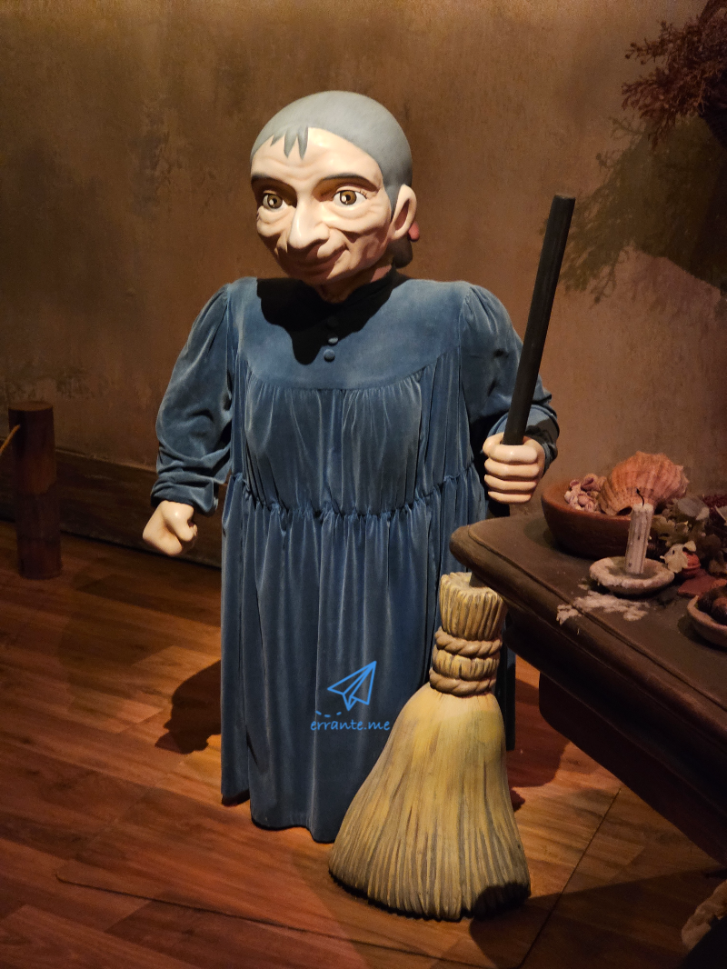 성으로 돌아온 하울이 소피를 보고는 누구냐고 묻자, 소피는 "나는 소피 할머니이고 당신의 새 청소부"라고 대답하죠. 빗자루를 든 90살 노인 소피의 모형이 서 있는데 상당히 키가 작게 묘사되어 있습니다.