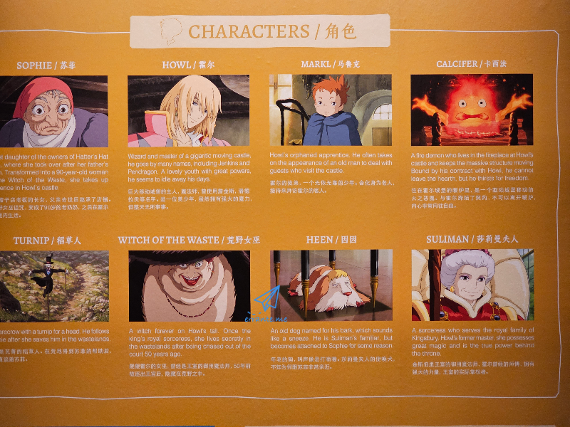 스튜디오 지브리 전시회의 첫 번째 작품은 <하울의 움직이는 성>입니다. 연대별로 작품 순서를 잡았다면 <바람계곡의 나우시카>가 처음 나왔을 텐데, 하울의 움직이는 성이 먼저 나온 걸 보면 주최 측에서 전시 순서를 달리 정한 것 같네요.