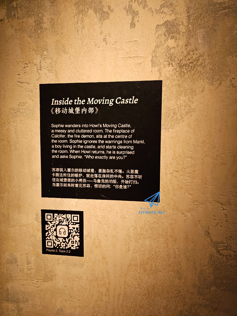 극 중에서 하울의 방은 성 2층에 있습니다. 전시공간에도 2층으로 올라가는 계단이 있고 그 위에 하울이 서 있습니다.