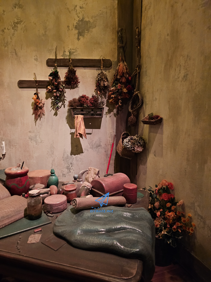 소피가 오기 전, 하울과 마르클만 살던 성 안의 가구와 잡다한 물건들은 정리되지 않은채 엉망인데, 애니메이션 속 모습 그대로 재현되어 있습니다. 실물 크기 그대로라 현실감이 더 강하게 느껴집니다.
