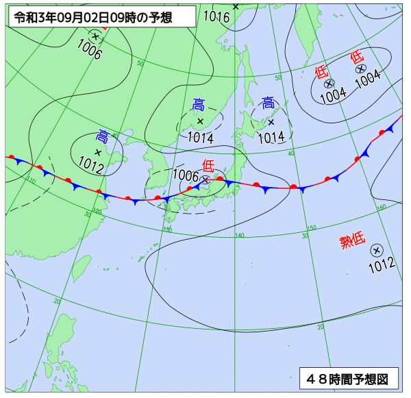 (일본기상청 예상일기도 참조)