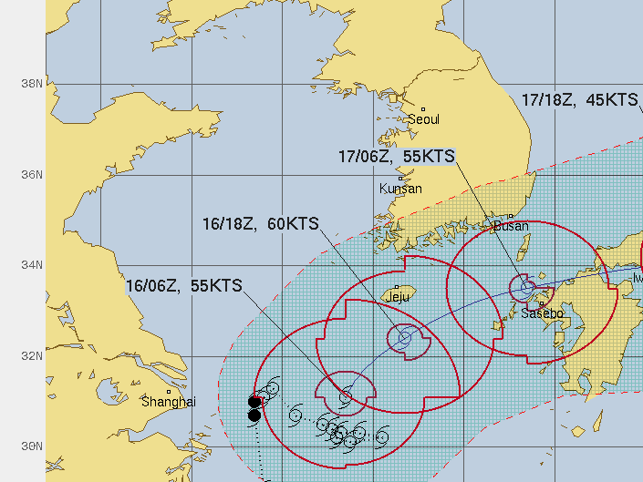 미국합동태풍경보센터 JTWC, 일본기상청, 우리나라 기상청 모두 태풍 찬투가 17일 하루 동안 우리나라와 일본 남부 규슈 사이를 지나 일본으로 상륙할 것으로 예상하고 있습니다.