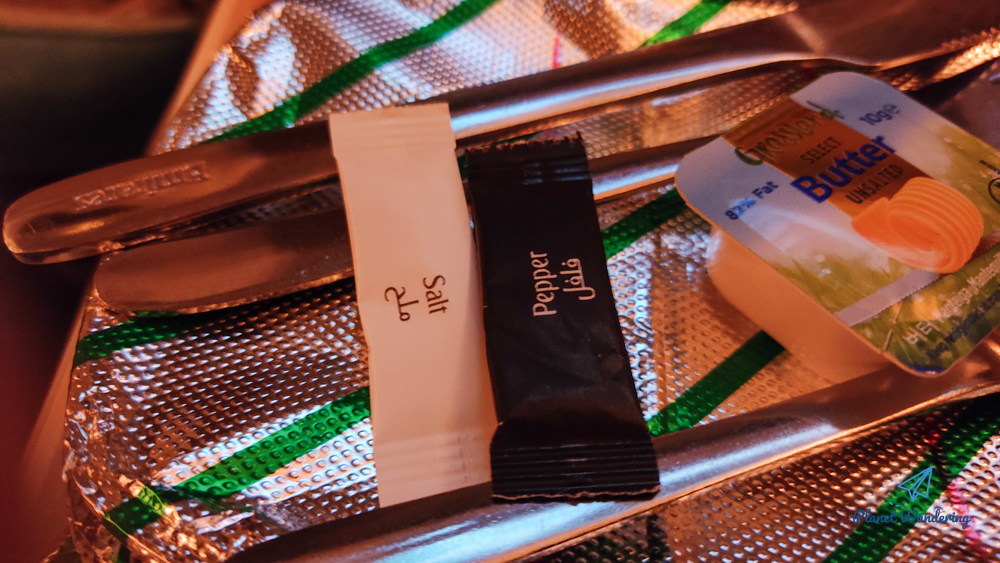 어차피 입 안에서 빵과 버터가 섞이기 때문에 방랑객은 버터를 빵에 발라먹는다기 보다는 빵을 찢어 버터를 끼워먹는 편입니다. 가끔 다른 승객들 식사하는 모습을 훔쳐보면 버터를 빵에 아주아주 정성스럽게 발라 드시는 분들이 있는데 이런 모습을 슬쩍 구경하는 것도 기내식을 먹는 재미 중 하나입니다.
