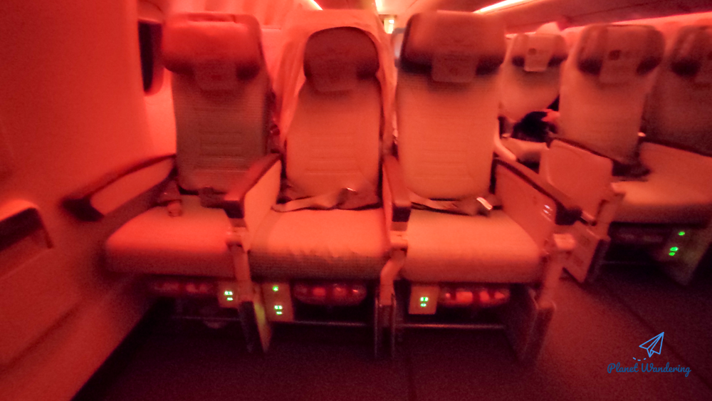 승무원 입장에서는 밥을 주고 식기를 회수하면 큰 이벤트 하나를 끝낸 셈입니다. 객실의 조명을 최대한 낮추고 승객들이 잠들 수 있는 분위기를 만들어줍니다. 우리나라 시간으로는 새벽 1시 넘어 야식을 거하게 먹고 잠이 슬슬 오는 시간대입니다.