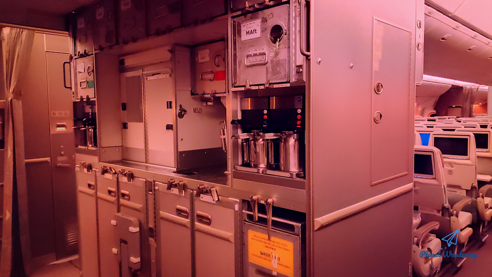 손님이 많지 않은 걸 미리 계산한 듯 비행기 중간에 위치한 갤리는 아예 사용하지 않은 상태였습니다. 그러나 코로나로 승객이 많지 않다고는 해도, 날에 따라서는 비행기가 꽉 차서 두바이로 가는 경우도 있기 때문에 코로나 시대에도 옆자리가 비어 가거나 누워가는 건 운에 맡길 수밖에 없습니다.
