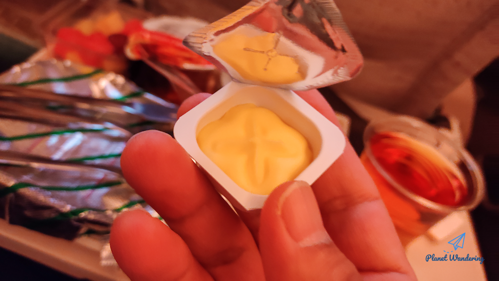 어차피 입 안에서 빵과 버터가 섞이기 때문에 방랑객은 버터를 빵에 발라먹는다기 보다는 빵을 찢어 버터를 끼워먹는 편입니다. 가끔 다른 승객들 식사하는 모습을 훔쳐보면 버터를 빵에 아주아주 정성스럽게 발라 드시는 분들이 있는데 이런 모습을 슬쩍 구경하는 것도 기내식을 먹는 재미 중 하나입니다.
