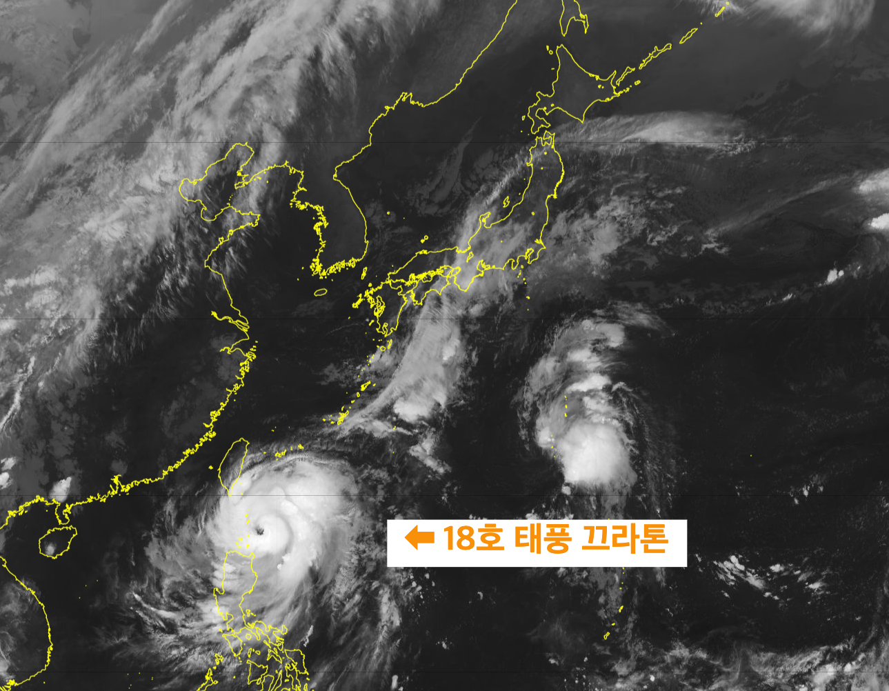 지난 토요일 필리핀 북동부 해역에서 발생한 2024년 18호 태풍 끄라톤이 몸집을 키우며 북상하고 있습니다. 9월 29일 화요일 밤, 일본의 히마와리 기상위성이 촬영한 사진을 보면 태풍 끄라톤은 태풍의 눈과 소용돌이를 완벽하게 갖추고 태풍의 섬이라 불리는 필리핀 최북단 바타네스 제도를 지나고 있습니다. 북서태평양의 태풍 명명권을 가진 일본 기상청은 18호 태풍 끄라톤의 예상 진로를 우리나라 남해안으로 예측하고 있습니다.