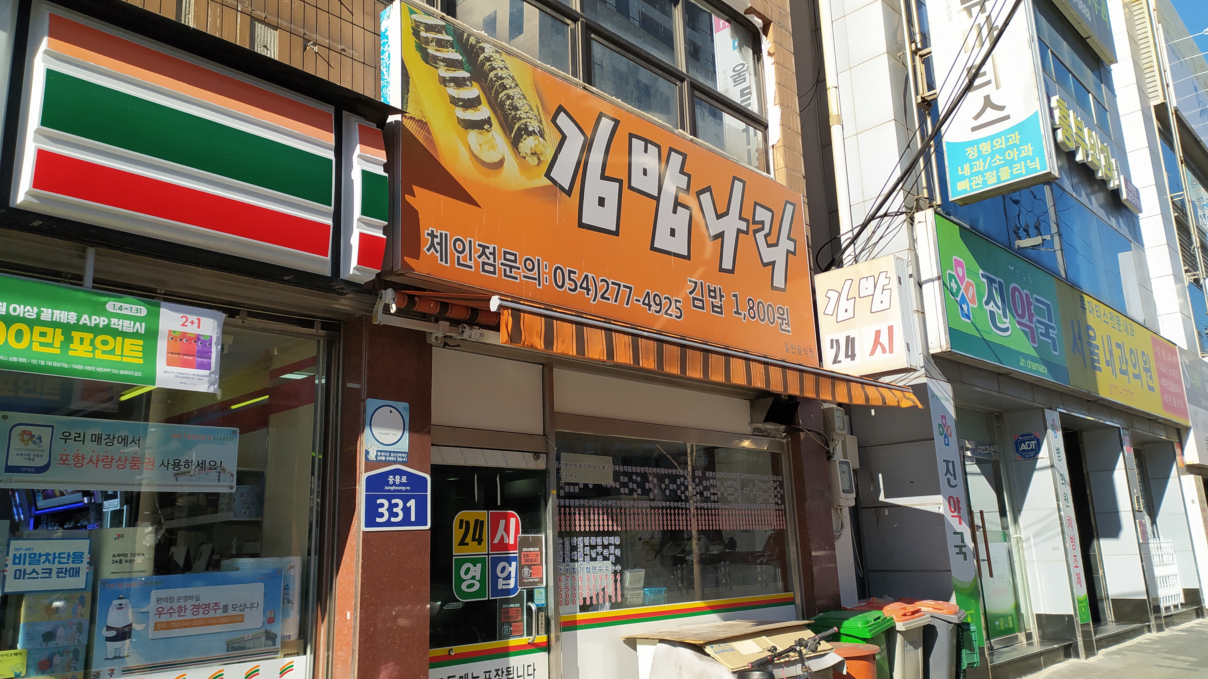 (포항 죽도시장 근처에 김밥나라.. 가 영업 중이네요. 간판 색상에 글자체까지 비슷합니다.)