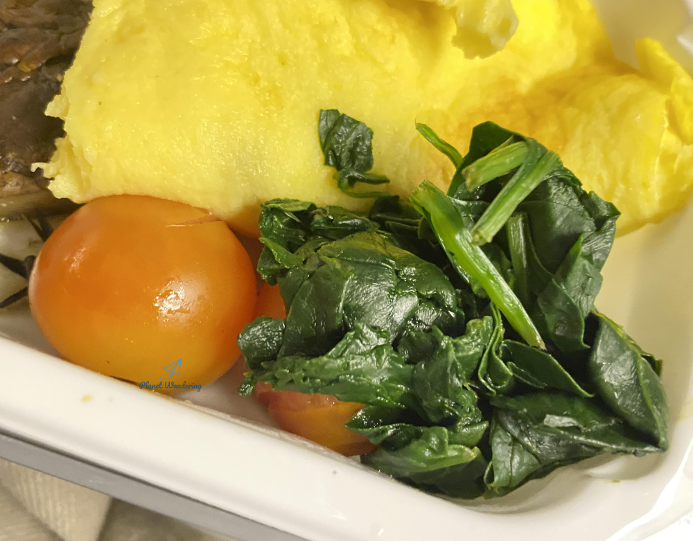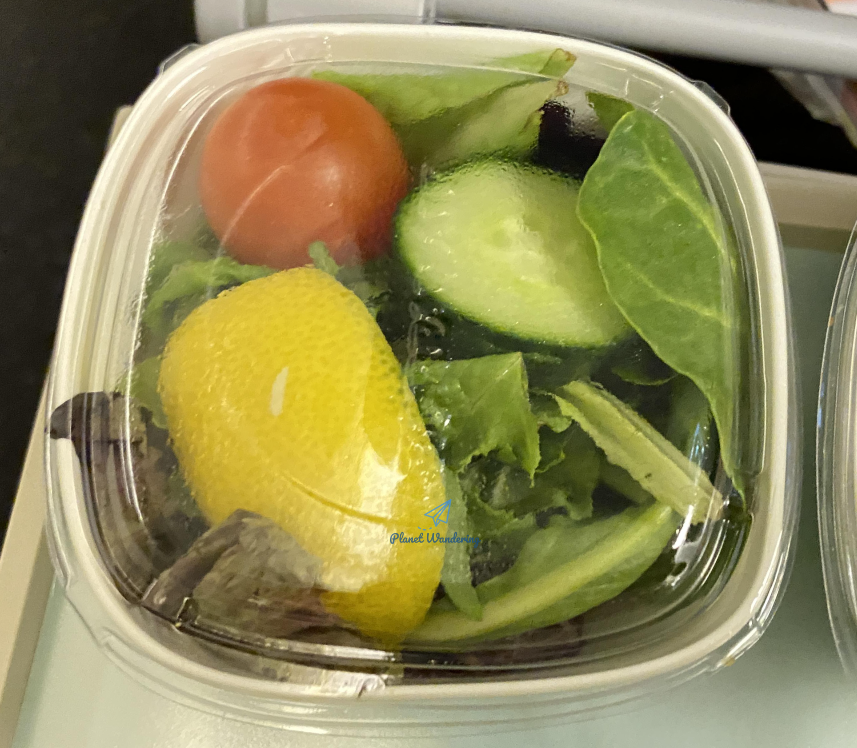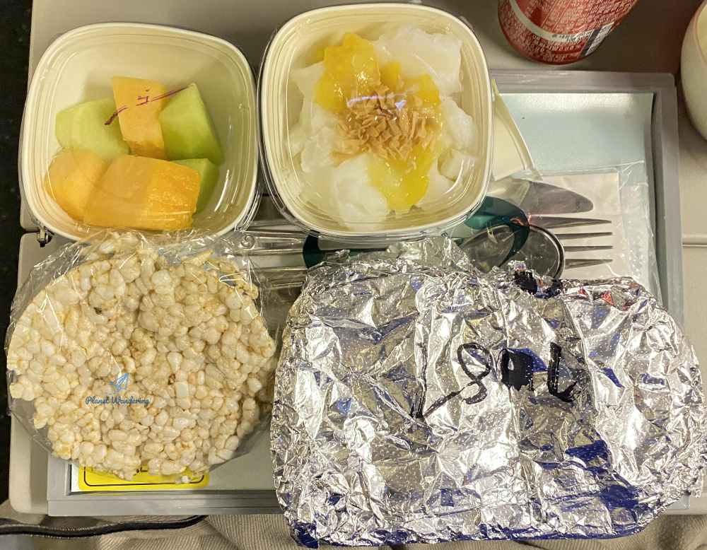 두 번째 밥도 특별식 주문 승객들에게 먼저 지급됩니다. 일반식 카트가 오기도 전에 먼저 음식이 나오니 괜히 주변 분들 눈치가 보이기도 합니다. 두 번째 식사는 아침식사 개념이기 때문에 만찬 개념인 첫 번째 식사보다 가벼운 음식들로 구성됩니다. 음료는 역시 콜라를 받았는데, 캔으로 나와 더 좋네요. 캔 음료는 종이컵 1잔보다는 양이 더 많기 때문에 더 많이 마실 수 있죠.