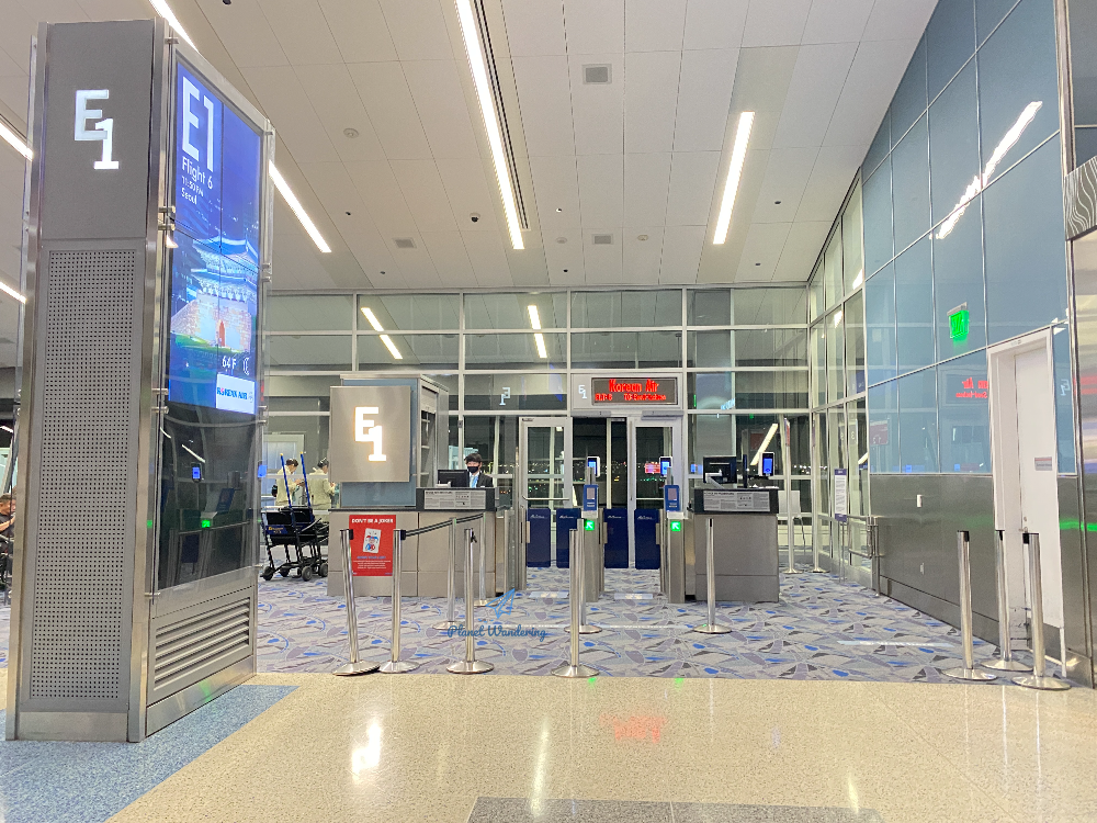 출국심사를 마치고 출발 게이트까지 왔습니다. 라스베가스는 건물 벽에 걸린 옥외 디스플레이가 아주 발달했다는 느낌을 받았는데, 게이트 입구 전광판에도 서울을 대표하는 이미지로 남대문 사진이 걸려 있네요. 기내 구역 별로 탑승순서를 나누는 ZONE 1,2,3 유도선이 있습니다.