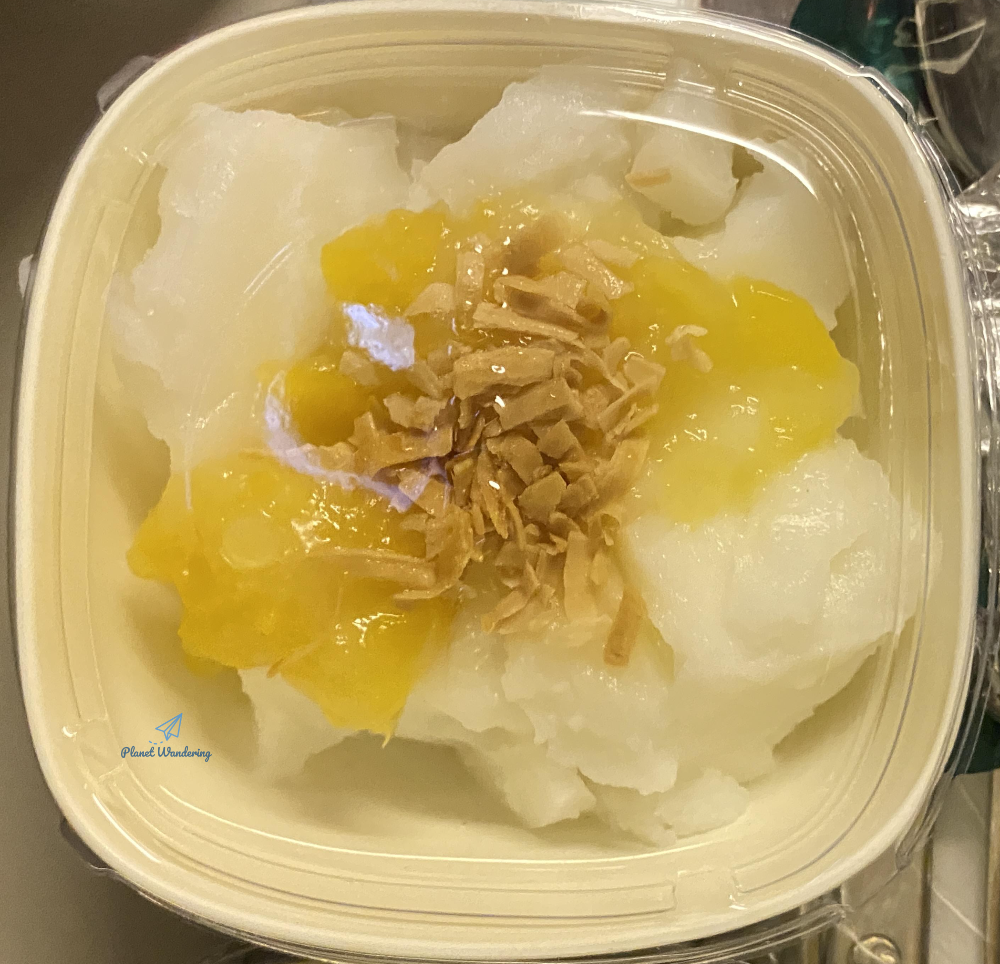 반가운 뻥튀기가 또 나왔네요. 파파야와 멜론 몇 조각도 나왔습니다. 햐안 무스 같은 요 녀석은 처음 보는 비주얼에 약간 특이한 맛이었는데 음식 이름은 잘 모르겠네요.