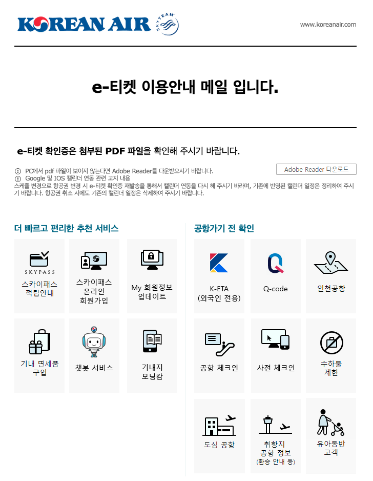 ● 내항기 일정이 추가된 항공권 이티켓은 예약이 완료되고 약 10분 후 이메일로 수신된다.