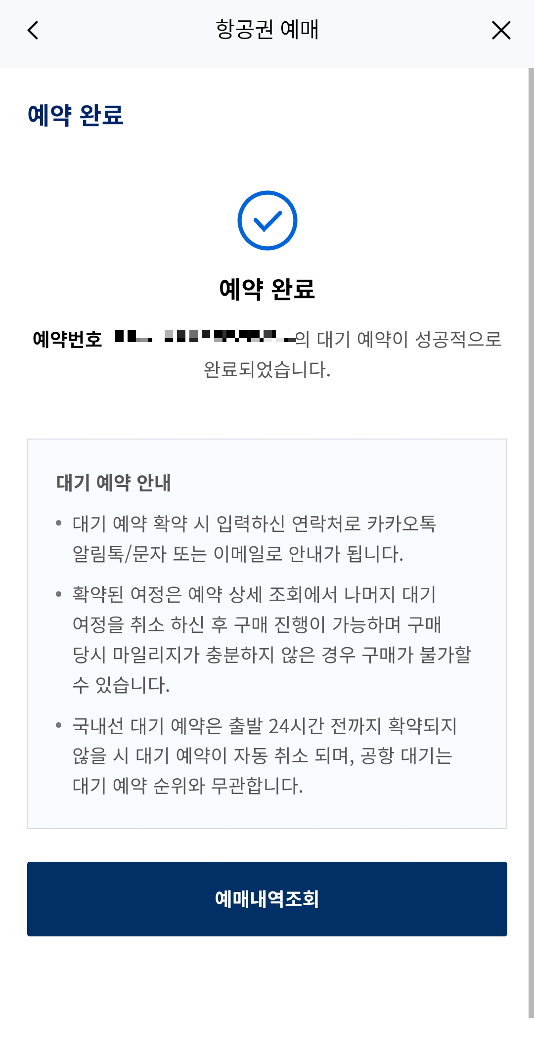 가족회원의 마일리지를 더해서 프레스티지 비즈니스 클래스 항공권도 욕심내봤습니다. 항공권 잔여석은 보이지 않고, 대기 예약은 할 수 있죠. 잠시 대기예약을 걸어보기도 했는데, 비즈니스석 대기예약 기다리다 일반석 좌석도 소진될까 걱정이 되어 대기예약은 금방 취소해버렸습니다.