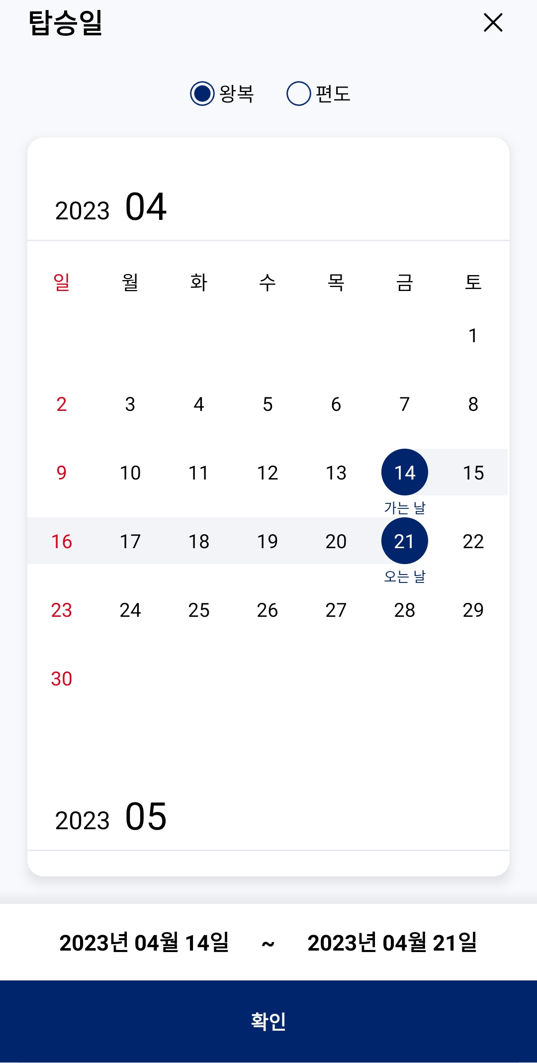 2022년 말 ~ 2023년 초, 대한항공의 라스베이거스 취항 스케줄은 월 / 수 / 목 / 금 / 일 / 입니다. 4월 14일 출국을 해서 4월 21일에 귀국 편을 탑승하는 일정을 선택해 봅니다. 우리나라에서 동쪽으로 이동하는 여행의 경우, 되돌아올 때 시차 손해를 보기 때문에 미국에서 21일 금요일에 출국을 하면 23일 일요일에 우리나라에 도착을 하게 됩니다.