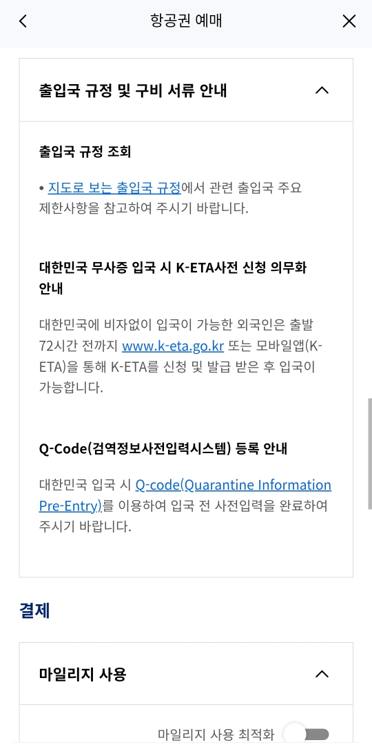 예매 확정 과정으로 넘어갑니다. 가는 편과 오는 편을 한번 더 확인하고, 승객정보를 입력합니다. 마일리지로 항공권을 구매하면 항공권 코드가 X 입니다. 그래서 일반석(X)으로 표기가 되어 있네요. 승객 정보 중 가장 중요한 것은 영문 이름입니다. 영문 이름 철자가 틀리게 되면 수정하는데 추가 요금이 들 수도 있고, 아예 항공권을 다시 구매해야 하는 경우도 있어 주의해야 합니다. 항공사 앱으로 본인 항공권을 구매할 때는 이미 이름이 저장되어 있기 때문에 괜한 걱정을 덜 수 있어 좋죠. 이름과 함께 연락처 입력을 마쳤습니다.