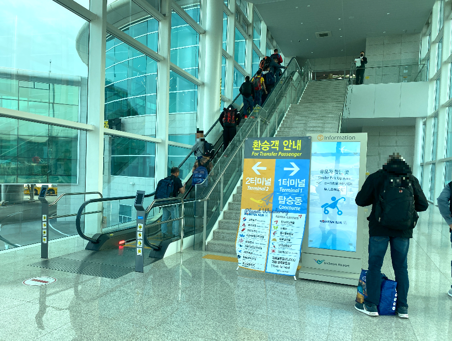 인천공항 1터미널로 가는 분들은 조금 복잡합니다. 승객들이 실수를 하지 않게끔 항공사 직원들이 내항기 내리는 현장에 나와 안내를 계속하기도 하죠. 1터미널로 가는 분들은 에스컬레이터를 타고 올라가는 게 아니라 환승통로를 따라 이동하고 1터미널과 2터미널을 연결하는 셔틀 트레인을 탑승해 이동하게 됩니다. 많이 걸어야 하고 전철을 기다렸다 타고 내리고, 보안검색도 하기 때문에 시간이 많이 소요될 수도 있죠.