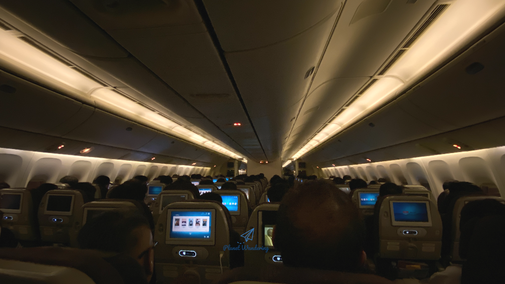 모든 장거리 노선 비행기는 밥을 먹이고 나면 불을 끄고 승객들을 재우게 되죠. 가끔 승무원들이 물과 음료를 들고 돌아다니며손님들에게 나눠주곤 합니다. 에미레이트항공은 기내 앰비언스 조명이 잘 갖춰져 있어 새까만 밤부터 여명을 거쳐 아침이 되는 과정을 조명을 표현해 줍니다만 대한항공 비행기에는 그런 낭만은 없네요.
