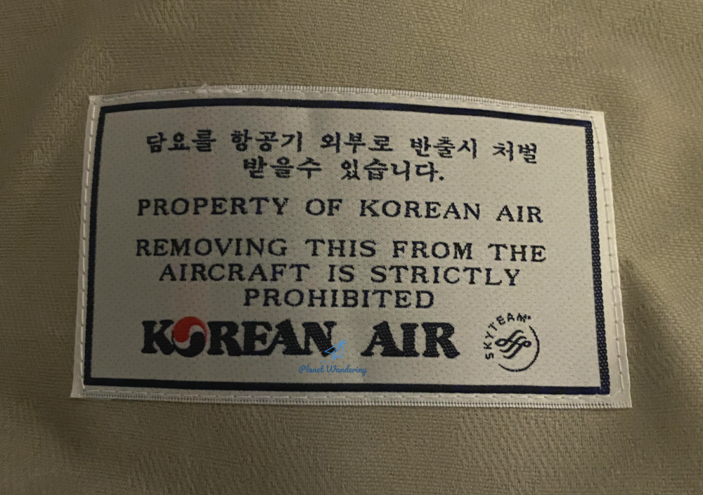 아직도 비행기 기내 담요를 밖으로 가져나가는 승객들이 있는지 "담요를 가지고 나가면 처벌받을 수 있다"는 협박성 문구가 붙어있습니다. 왜 명조체를 사용했을까 생각이 먼저 들었는데, 대충 보면 북한 비행기 안내문 같은 느낌까지 듭니다.