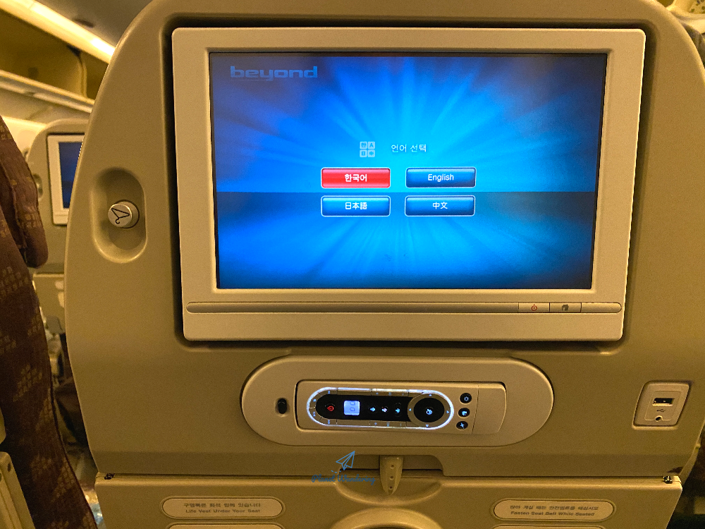 기내 엔터테인먼트 시스템은 실망스러웠습니다. 모니터의 크기나 리모콘의 조작성 등을 떠나 콘텐츠의 양이 많이 부족했습니다. 물론 최근 몇 년 동안 이용한 에미레이트항공과 비교하는 게 옳지 않은 비교일 수 있지만 블록버스터 영화나 애니메이션 등에서 종류와 수량의 차이가 컸습니다. 주로 한국인 승객을 태우기 때문에 다국적 영화나 콘텐츠가 필요하지 않을 수 있겠지만 지루한 비행시간을 재미있게 만들어 줄 콘텐츠는 많이 부족했습니다.