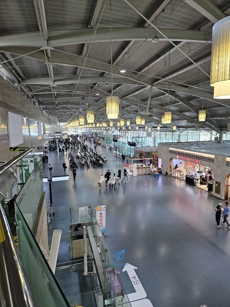 5번 게이트부터 저 끝까지가 국제선 청사의 3분의 2 정도 거리입니다. 반대편으로는 면세점이 좀 더 있고 인터넷이나 시내 면세점에서 구입한 물건을 찾을 수 있는 인도장이 있습니다.
