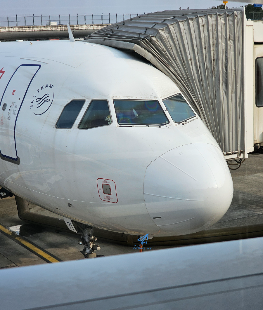 비행기가 게이트 앞에 완전히 멈췄습니다. 부산과 상하이를 오고가는 게이트는 공항 저 구석 같은 느낌이네요. 한적하고 공항 중심구역에서 먼 곳에 도착하고 출발하는군요.