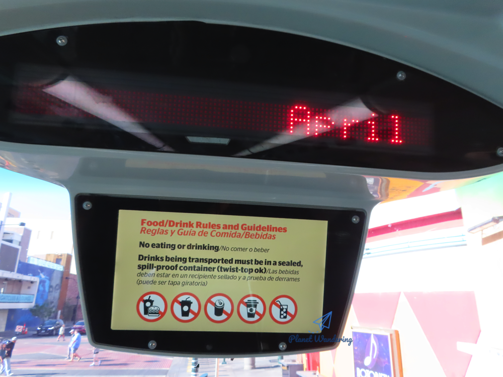 버스 맨 앞과 중간에 모니터가 걸려있는데 대부분의 버스에서 이 모니터는 안전 수칙 안내 등의 용도로만 사용하고 노선과 버스 위치를 안내해주는 경우는 많지 않았습니다. 대신 음성으로는 영어와 스페인어로 버스 정류장을 안내해 주죠. 정류장 위치를 알 수 없어 약간 걱정도 되지만 듀스 버스는 승객들이 내리고 타는 시간을 충분하게 주기 때문에 급하게 뛰어내리거나 버스가 멈추기 전에 미리 자리에서 일어날 필요도 없습니다.