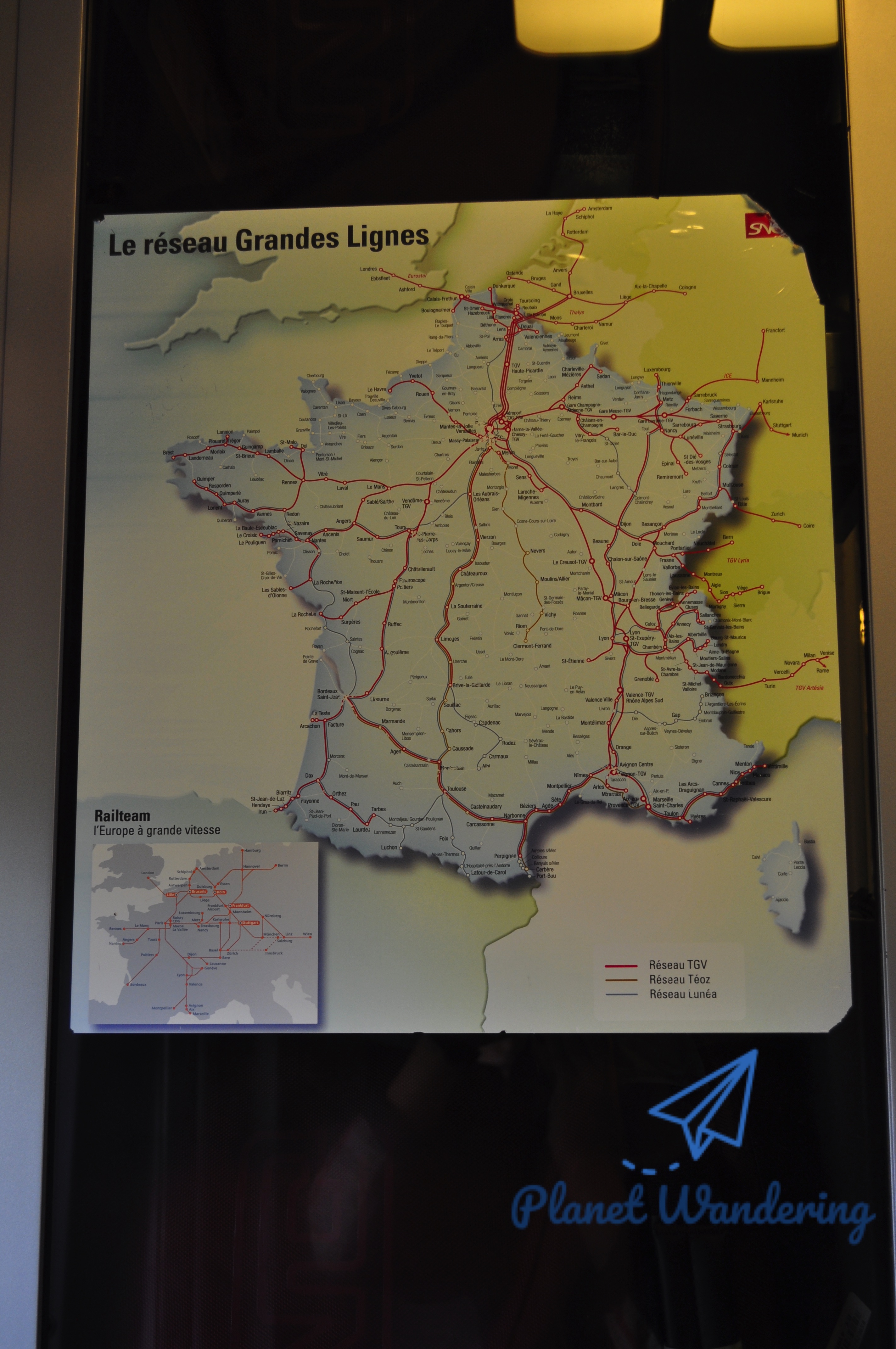 객차와 객차 사이 공간에 붙여놓은 SNCF 노선도를 따라 TGV는 라 로셸을 향해 서쪽으로 달립니다.