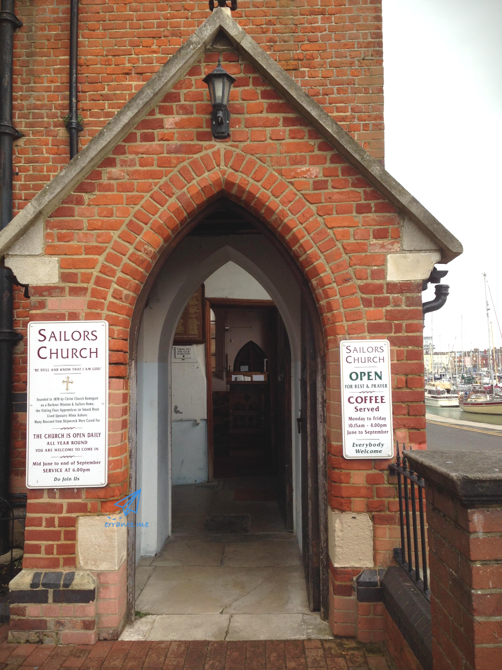 항구에서 바라보는 램즈게이트의 모습은 보면 볼수록 흥미롭습니다. 마치 타임머신을 타고 1800년대 영국에 온 느낌이 들 정도입니다. 하버 아치를 따라 서쪽 끝에는 역시 붉은 벽돌로 지은 건물이 3층 높이의 석회암 절벽에 맞붙어 있습니다. 이 건물은 1878년에 지어졌는데, 당시 선원들을 위한 교회이자 선원들의 숙소로 사용되었습니다. 이 건물 역시 잉글랜드의 국가 문화유산으로 관리되고 있습니다.
