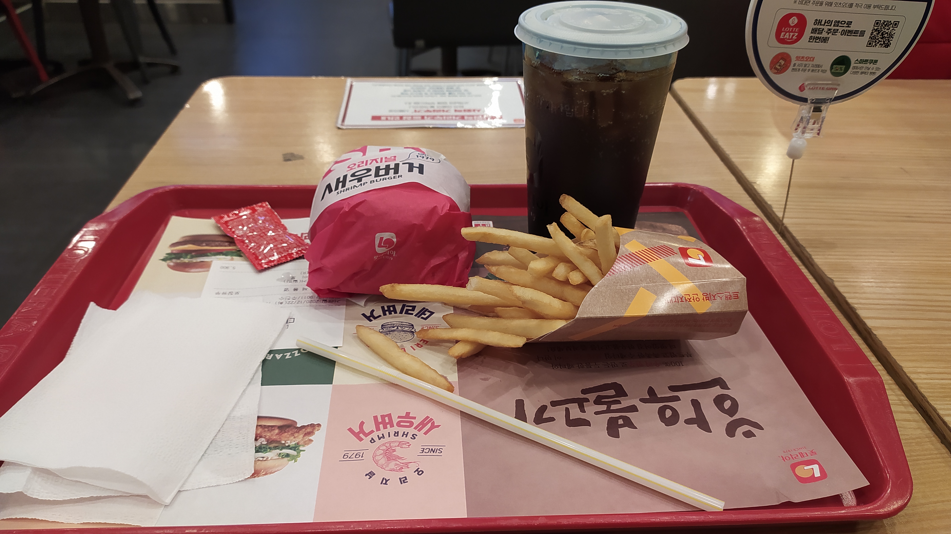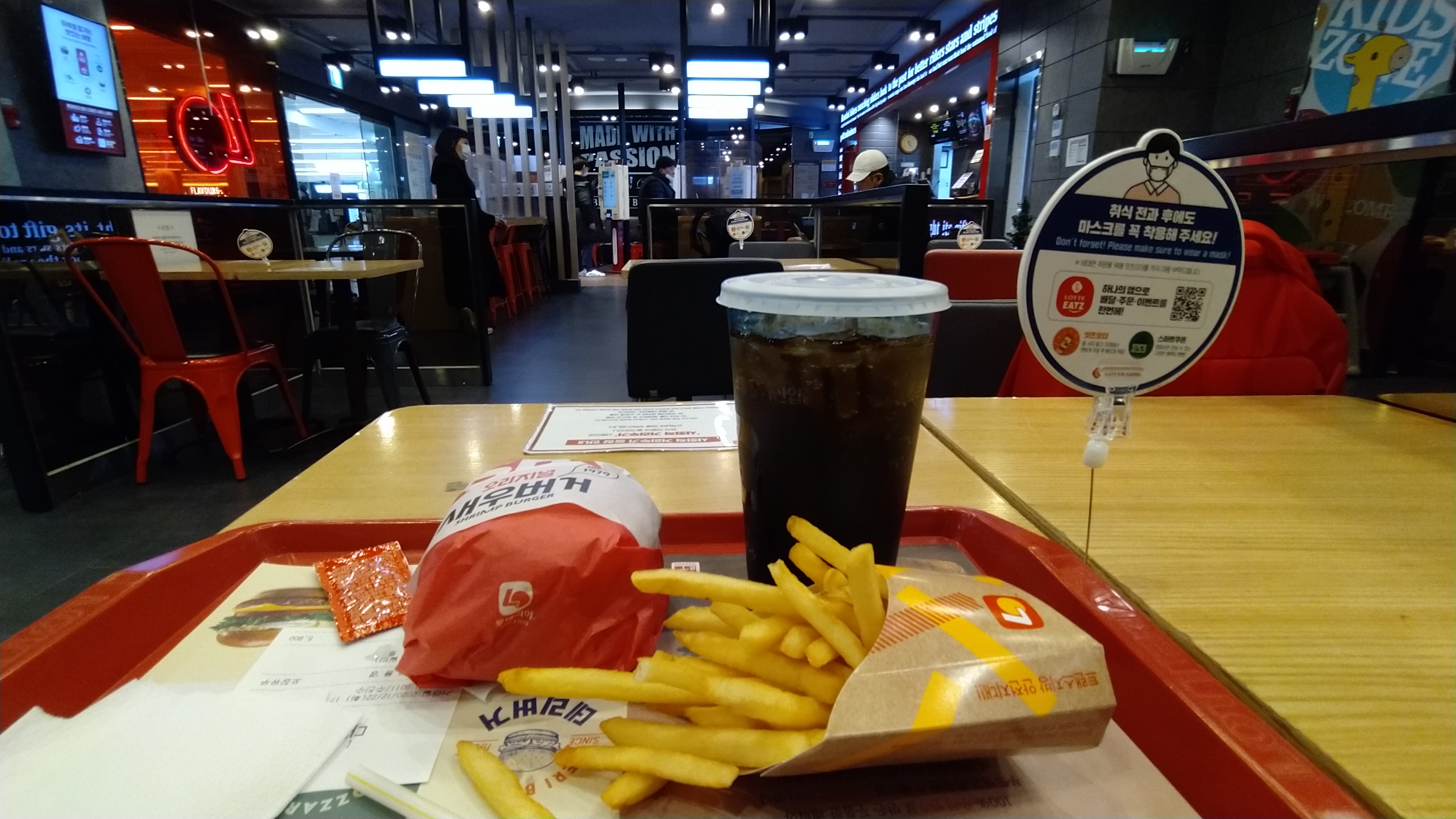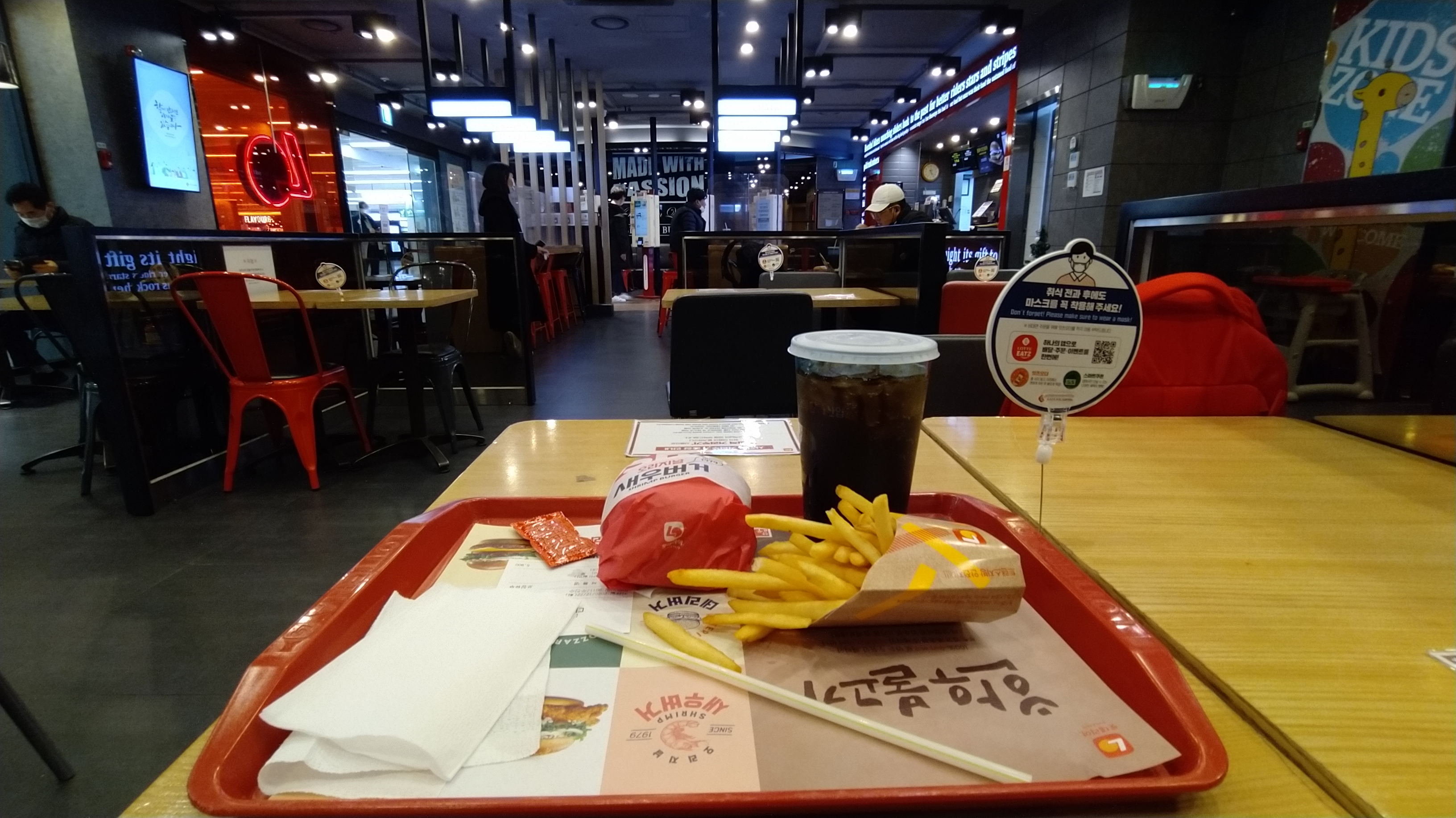 햄버거를 시키면 매장에 앉아서 먹을 수 있어요