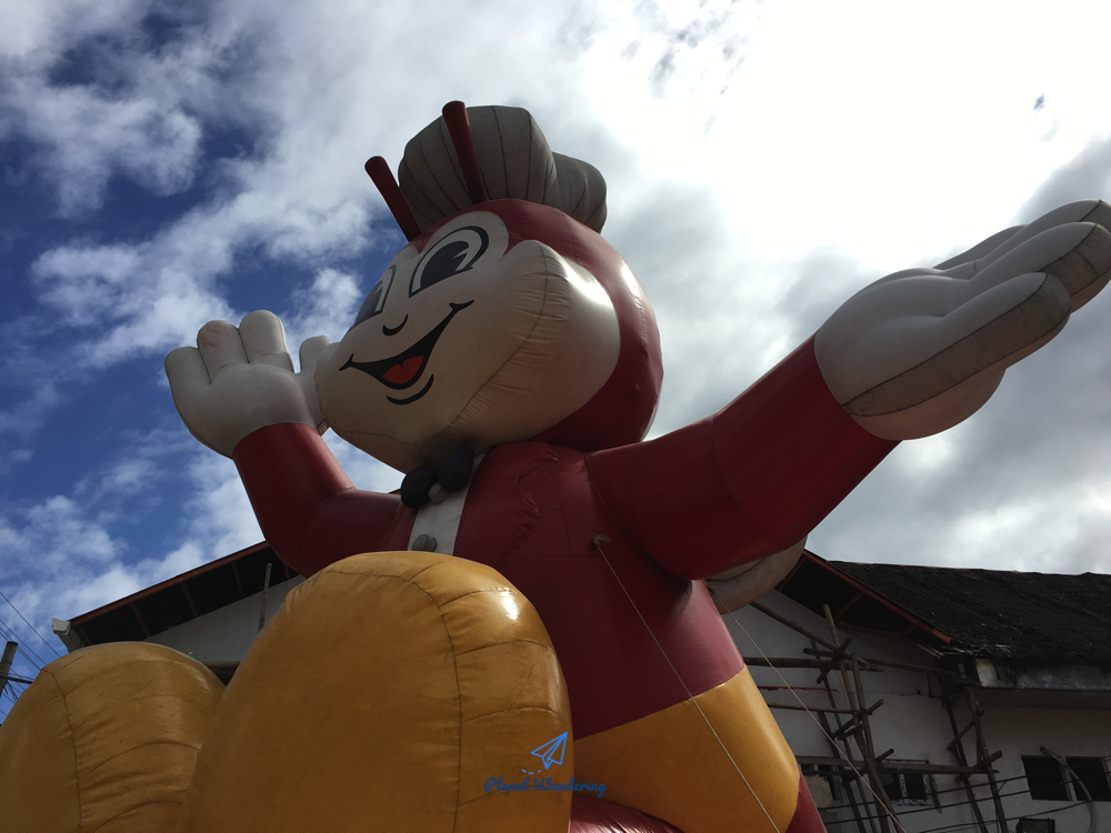 우리 정서로는 졸리비의 마스코트 벌이 별로 안 예뻐 보일 수도 있는데, 필리핀에서는 친근한 캐릭터로 자리를 잡은 것 같습니다. 보라카이의 졸리비 매장 개장 초기의 모습인데, 개장을 기념한 커다란 풍선 인형도 주차장에 서 있습니다.