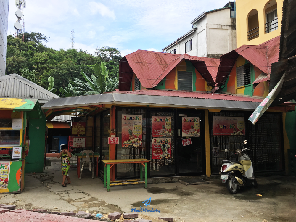 보라카이 화이트비치 스테이션 1과 가까운 대로변에 있는 조나스 Jonah's 입니다. 과일 쉐이크와 피자 같은 음식류를 파는 식당이죠. 건물 외경은 물론 내부까지 알록달록하게 장식된 이 과일 셰이크 가게는 보라카이의 명물 중 하나입니다.