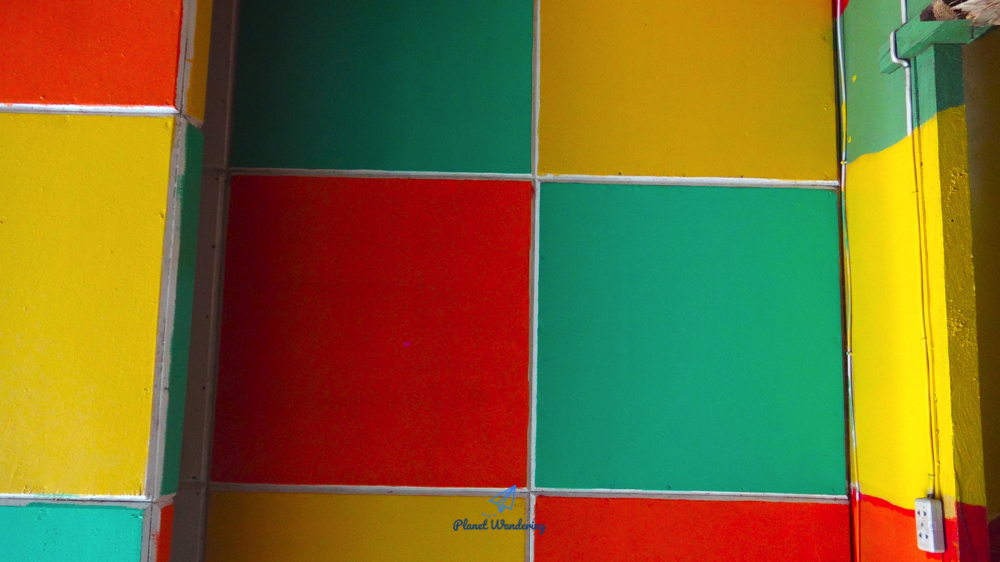 조나스 과일 쉐이크 전문점은 벽면과 천장도 알록달록합니다. 직원들도 같은 패턴과 색상으로 만든 유니폼을 입고 있죠. 허름해 보이지만 나름 돈을 끌어모으고 있는 부자 음식점일 수도 있겠네요.