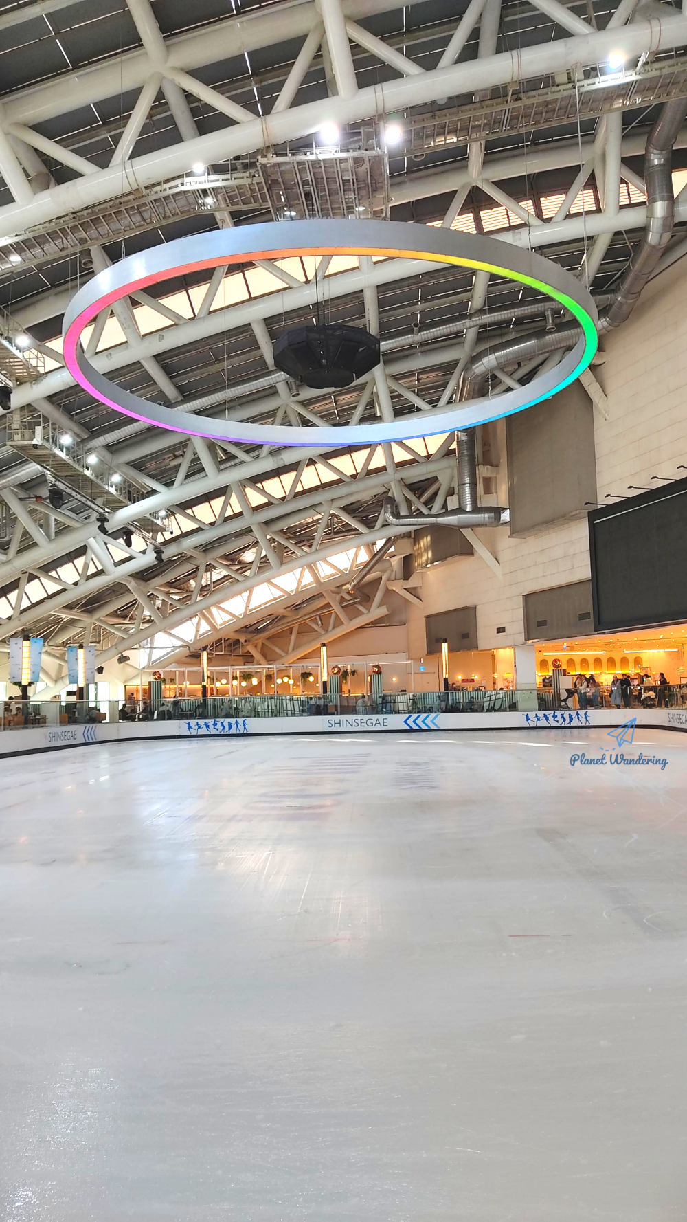 신세계 아이스링크는 실내 기온이 높습니다. 겨울에도 춥다는 느낌이 전혀 들지 않는데 공기가 따뜻한 만틈 빙판에도 물기가 많습니다. 표면이 약간씩 녹아있는데, 그래서 넘어지게 되면 옷에 얼음이 붙는 게 아니라 비 오는 날 넘어진 것처럼 옷이 흠뻑 젖게 됩니다. 신세계 아이스링크는 전체적인 시설관리가 깔끔하고 층고도 높고 탁 트인 개방감이 탁월해서 운동삼아 스케이트를 타기에도 좋고 더 많은 스킨십을 유지하며 데이트를 하기에도 좋죠.