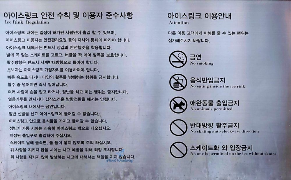 가격 대비 단점을 꼽으라면 정빙시간입니다. 매시 45분부터 15분간 정빙시간이 있는데 이때는 모두 휴게공간으로 나가있어야하고 정빙 차량이 얼음판을 닦습니다. 문제는 그다음입니다. 15분을 쉬고 다시 얼음판으로 들어갈 때 입장권을 검사하는데 여기에 발권 시각이 나와있죠. 이 시각을 기준으로 2시간을 넘어가면 입장이 불가합니다. 정말 운 좋게 표를 끊지 않는 이상 정빙시간이 2번 걸리게 되는데 이렇게 되면 30분으로 그냥 날리는 셈이 되어 14,000원이 조금 아깝죠.