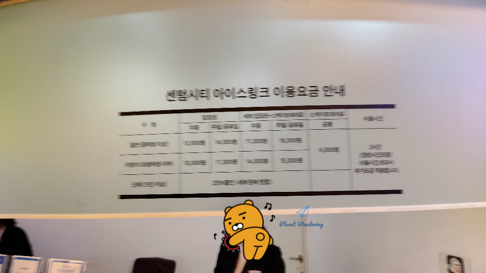 요금은 동래아이스링크보다는 비싸서 주말 기준으로 어른은 14,000원 || 어린이는 11,000원을 받고 있죠. 여기에 스케이트 요금이 4천원 추가되기 때문에 실제로는 주말 기준으로 어른은 18,000원 || 어린이는 15,000원을 내야 합니다. 만약 스케이트를 갖고 있다면? 입장요금만 내면 되기 때문에 스케이트 대여료는 내지 않아도 되죠. 단, 피겨 스케이트만 반입이 가능하기 때문에 날이 긴 스피드 스케이트를 갖고 계시다면 신세계아이스링크에서는 탈 수 없습니다.