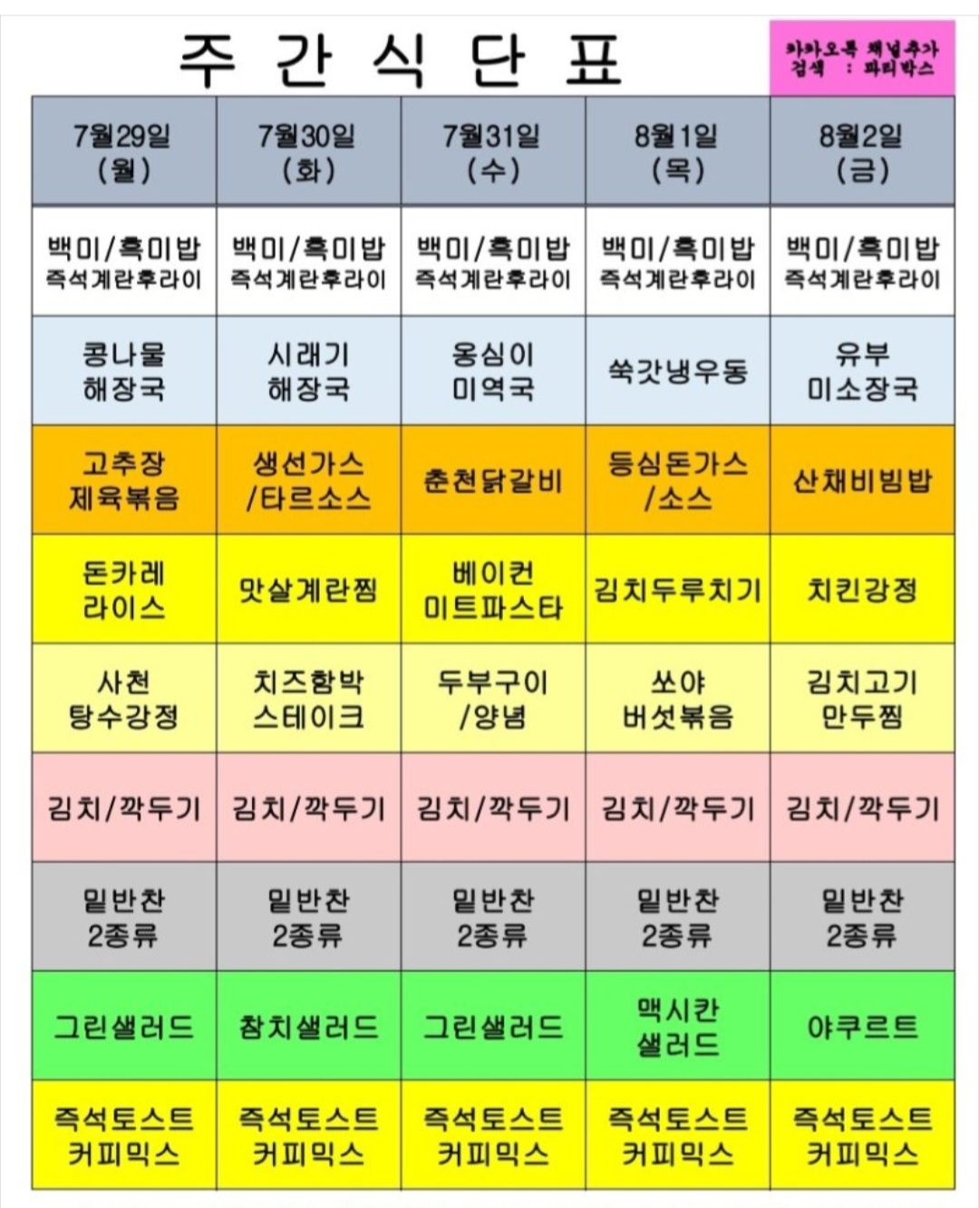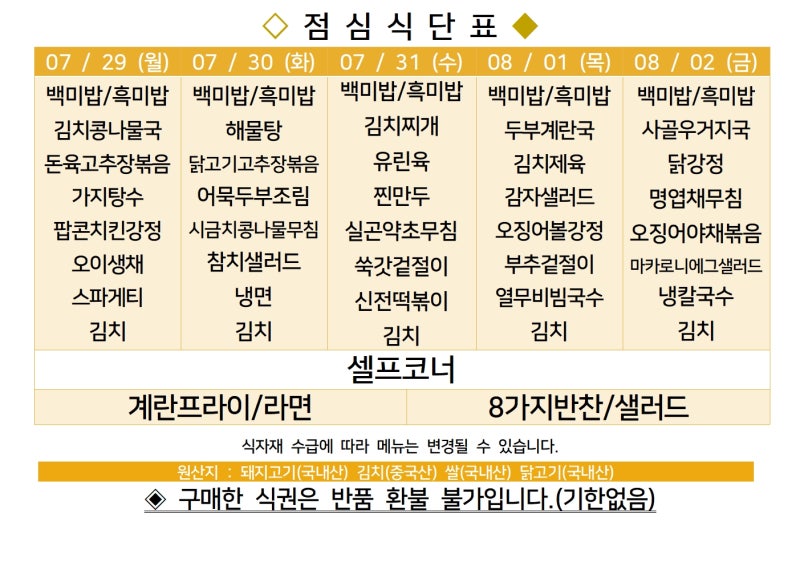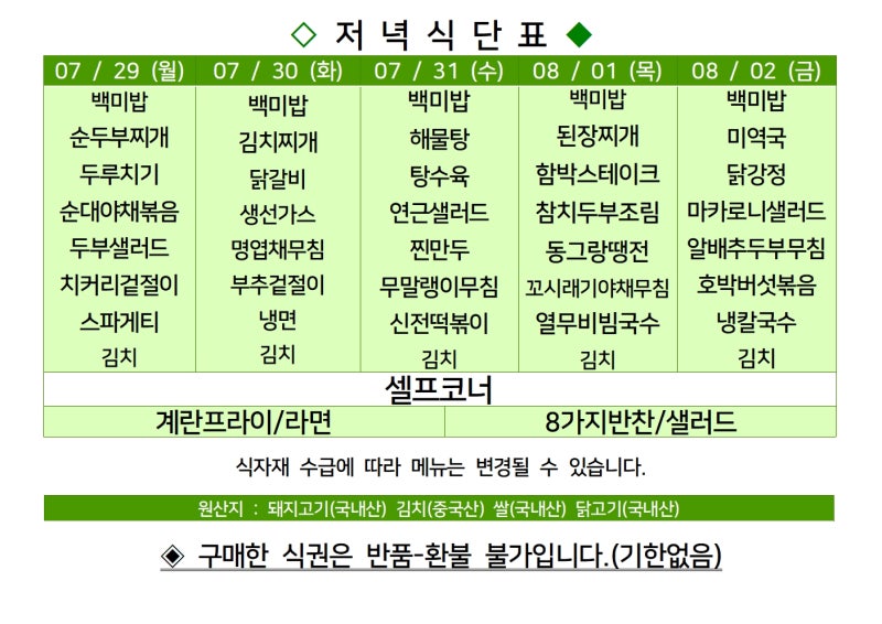 센텀시티 구내식당 식단표 2024년 [7월 28일 - 8월 2일] 주간