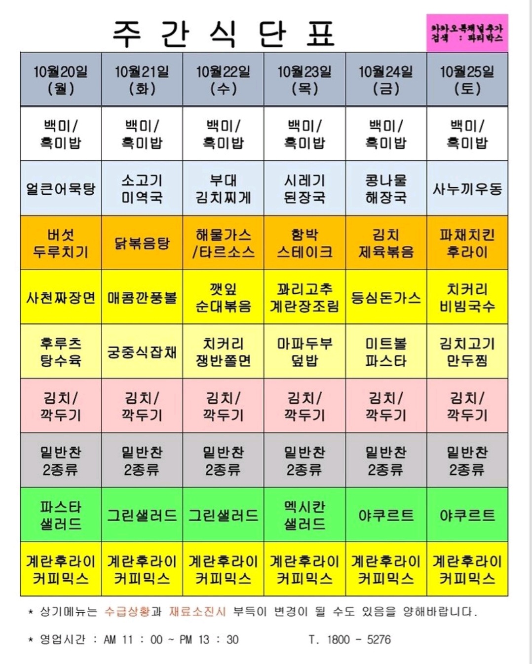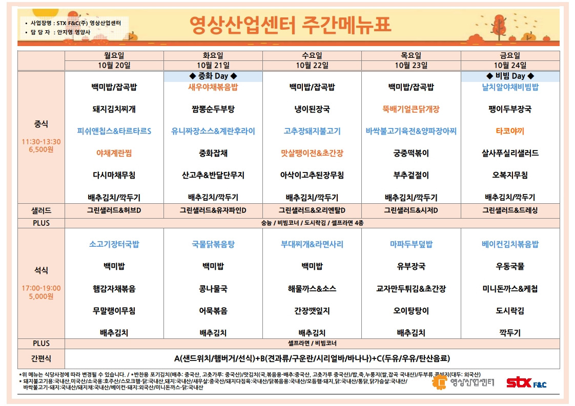 센텀시티 구내식당 식단표 2025년 [10월 20일~24일] 주간