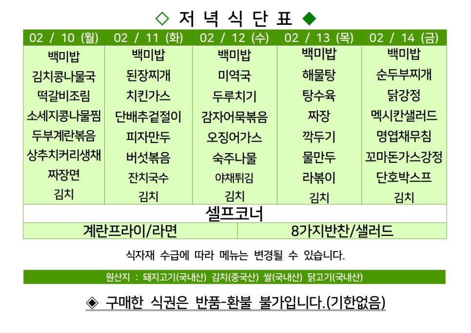 센텀시티 구내식당 식단표 2025년 [2월 10일 - 2월 14일] 주간