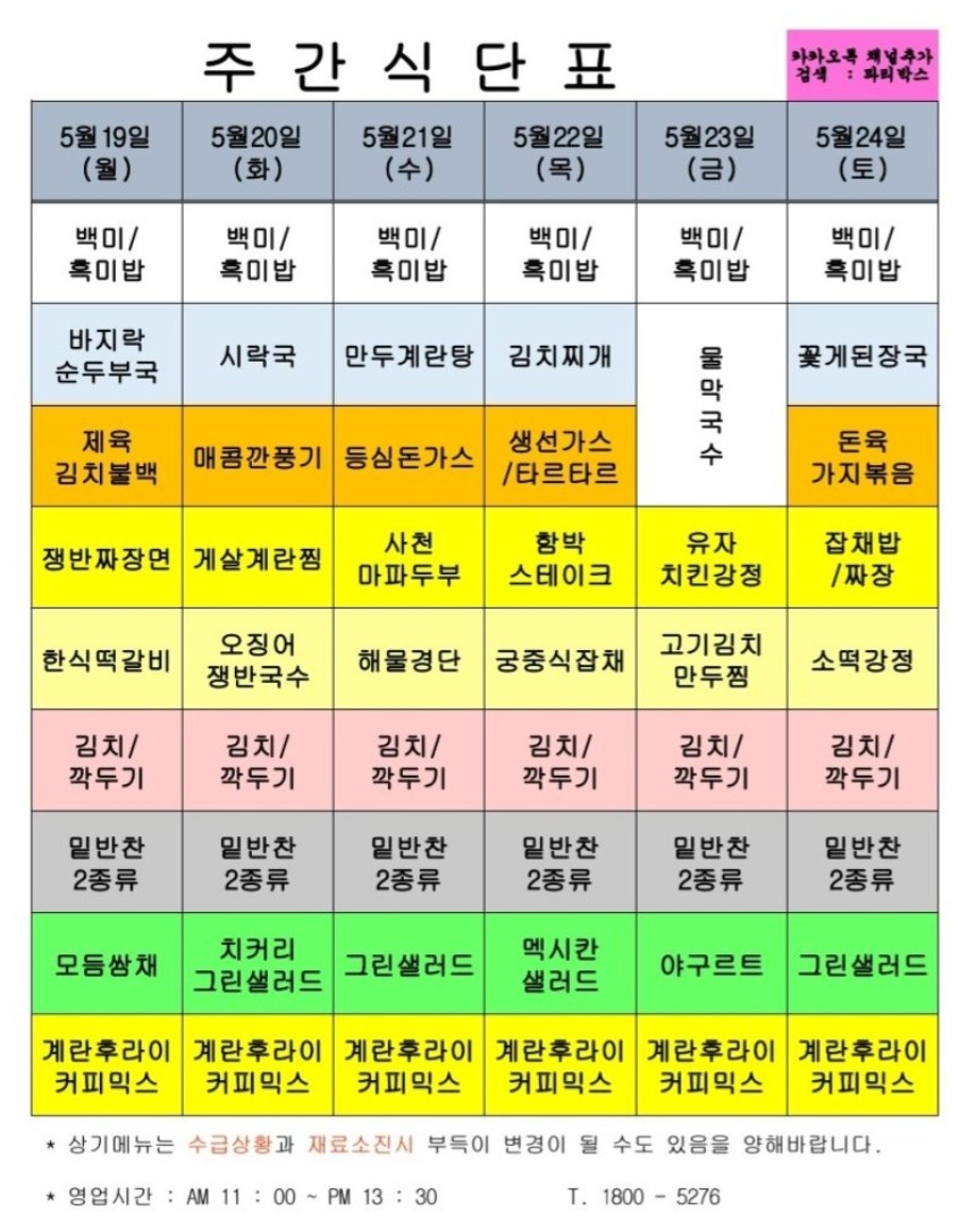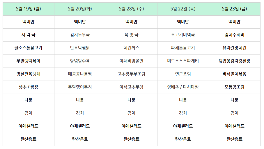 센텀시티 구내식당 식단표 2025년 [5월 19일 - 5월 23일] 주간