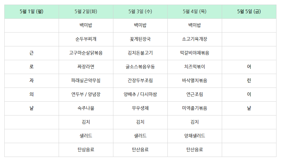센텀시티 구내식당 식단표 [5월 2일 - 5월 4일] 주간