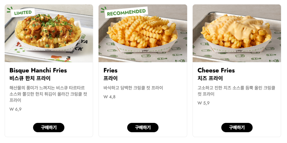 쉑버거, 쉐이크, 프라이 등 좋은 식재료에서 시작하는 쉐이크쉑 대표 메뉴