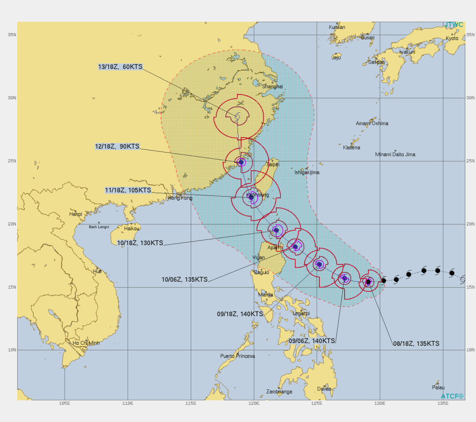 한편 슈퍼태풍이 된 14호 태풍 찬투는 필리핀 북부 태푸의 섬이라 불리는 바타네스제도를 지나 타이완 남부 가오슝을 강타할 것으로 예상됩니다. 슈퍼태풍 찬투가 가오슝에 최근접하는 시기는 9월 12일 새벽이 될 전망입니다.