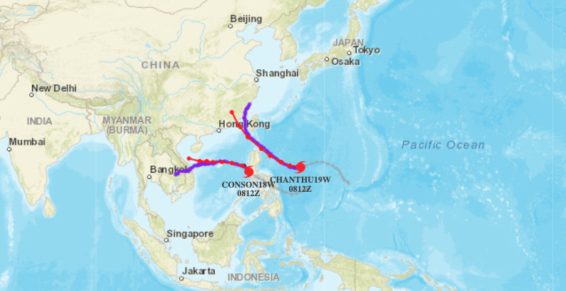 13호 태풍 꼰선은 베트남으로, 14호 슈퍼태풍 찬투는 타이완을 향하고 있습니다.