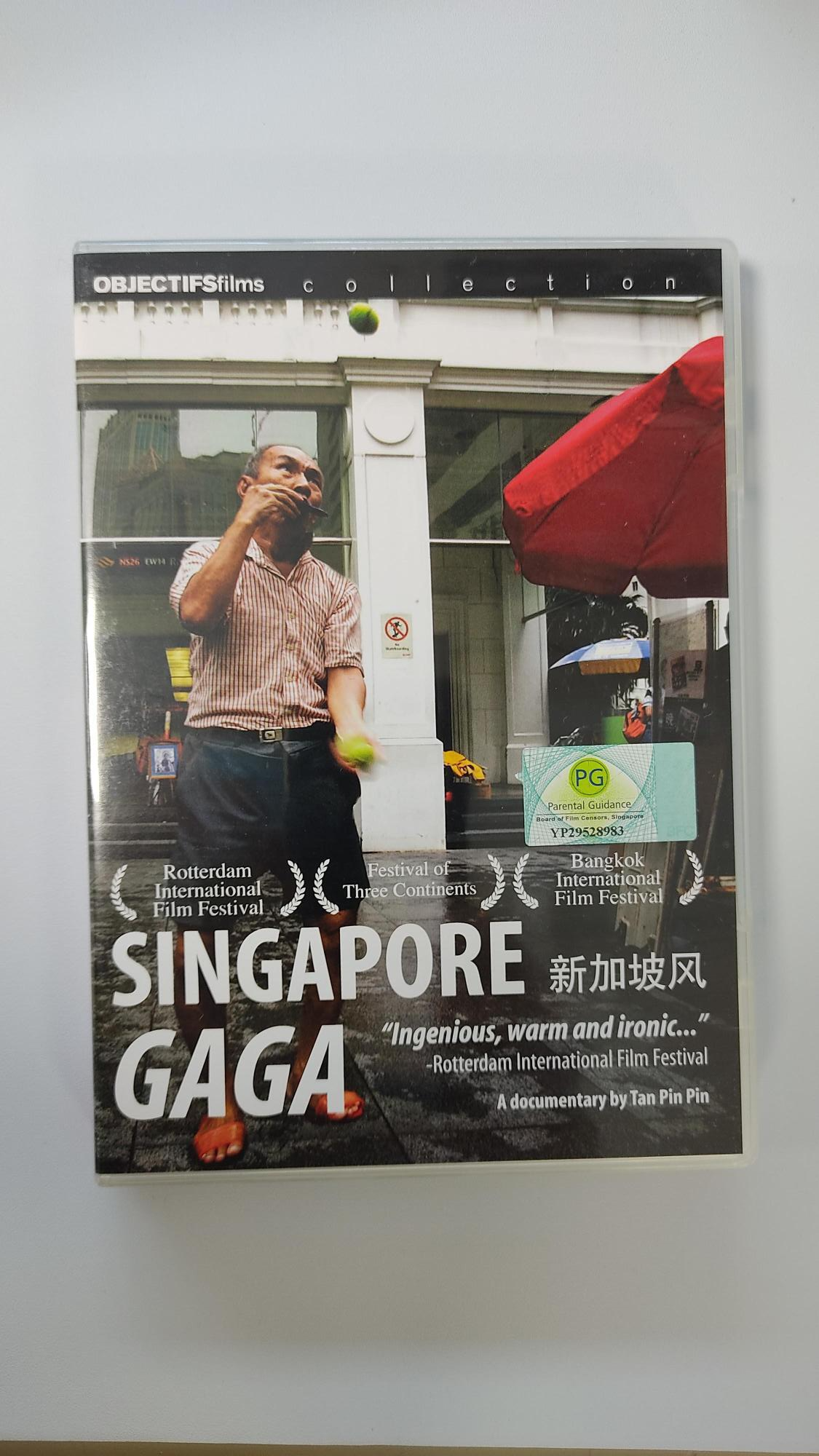 | 55분 분량의 싱가포르 가가는 싱가포르에서 최초로 영화 개봉을 한 다큐멘터리. 싱가포르 가가는 싱가포르의 과거와 현재를 즐겁고 유쾌함을 통해 보여주며 영화에는 버스커, 노점상, 학교 치어리더 등이 등장해 노래를 부른다. 아랍어, 라틴어, 하이난어를 포함한 영화 속 어휘들은 현대 싱가포르와 싱가포르 사람들의 모습을 설명하고 있다. |