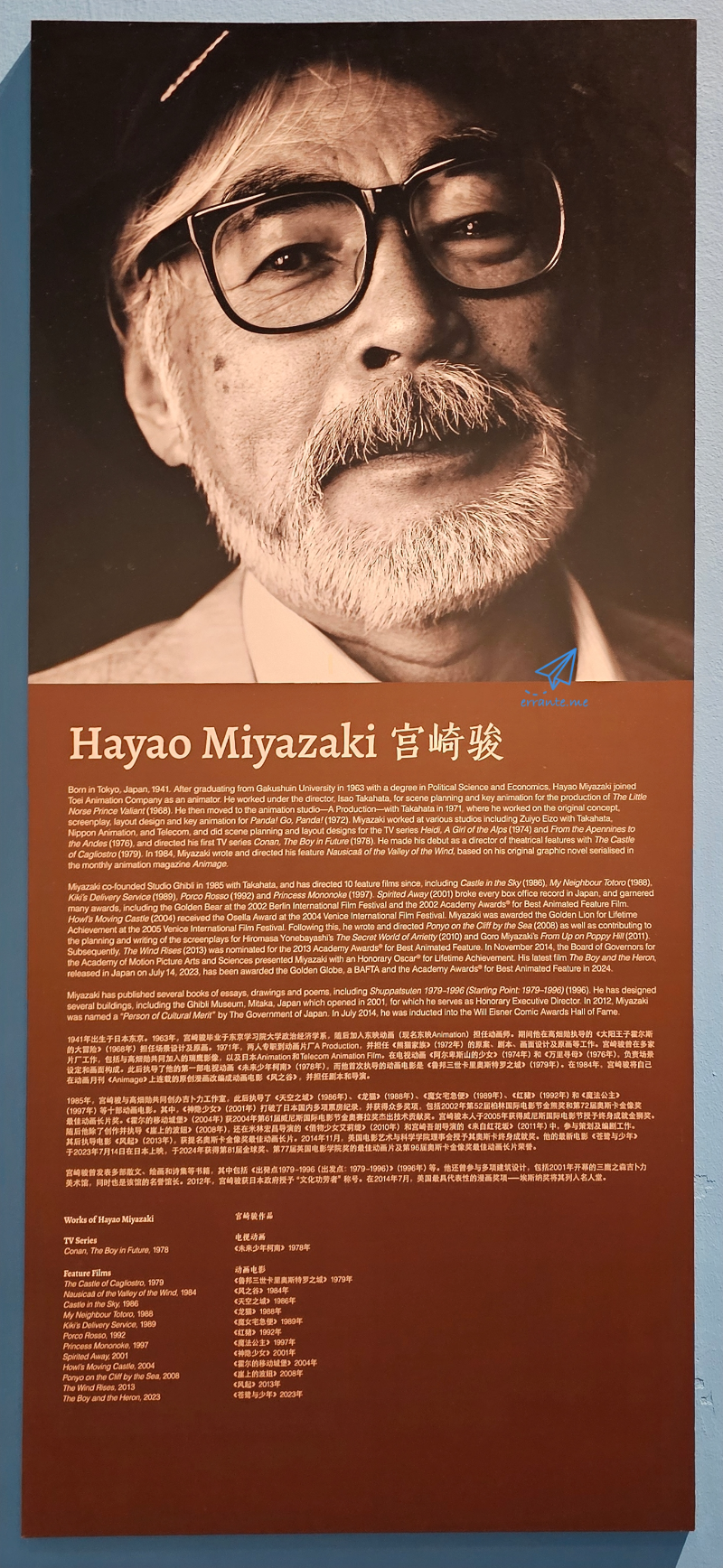 전시장에 들어서면 스튜디오 지브리에 대한 설명과 스튜디오 지브리를 설립한 미야자키 하야오, 타카하타 이사오, 스즈키 토이오의 프로필이 먼저 소개되어 있습니다.