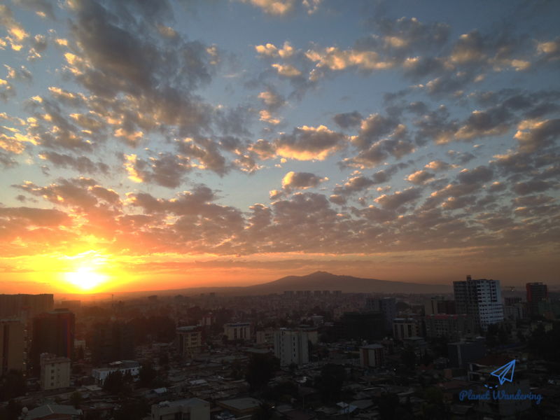 아디스 아바바 동쪽 지역에 있는 겟팜호텔 Getfam Hotel 에서 바라본 일출
