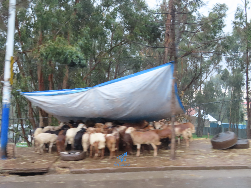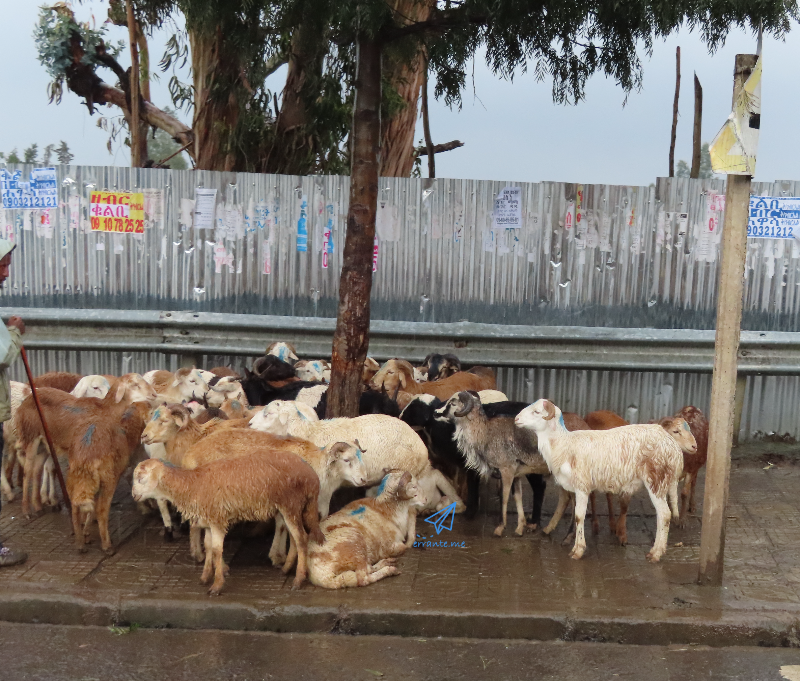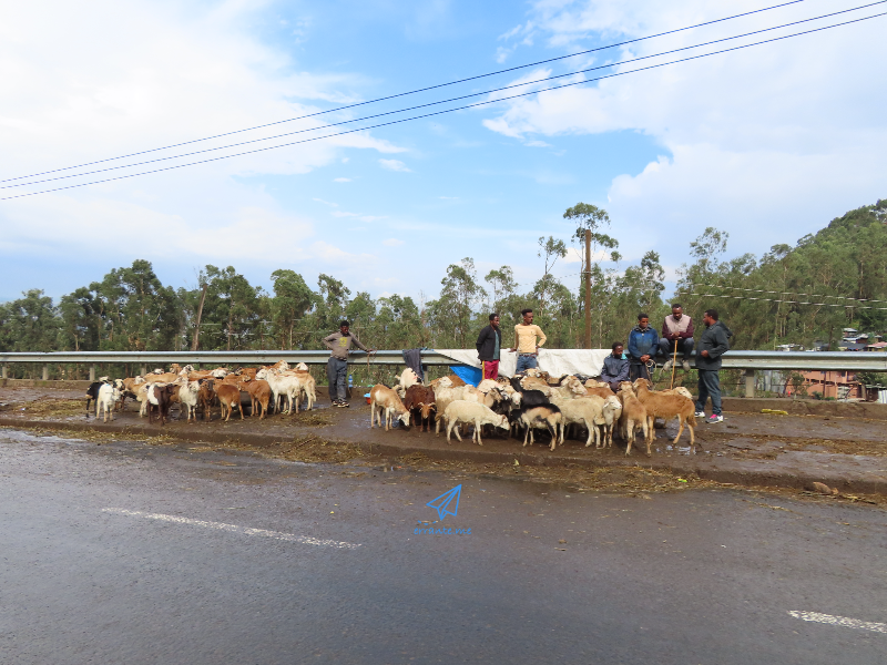정육점 거리를 지나 오로미아주 레가다포로 들어서면 도로변에 가축시장이 열리는 장면을 볼 수 있습니다. 간판도 없고 노점상 같은 모양새이지만 거의 매일 양을 사고파는 사람들이 모여듭니다.