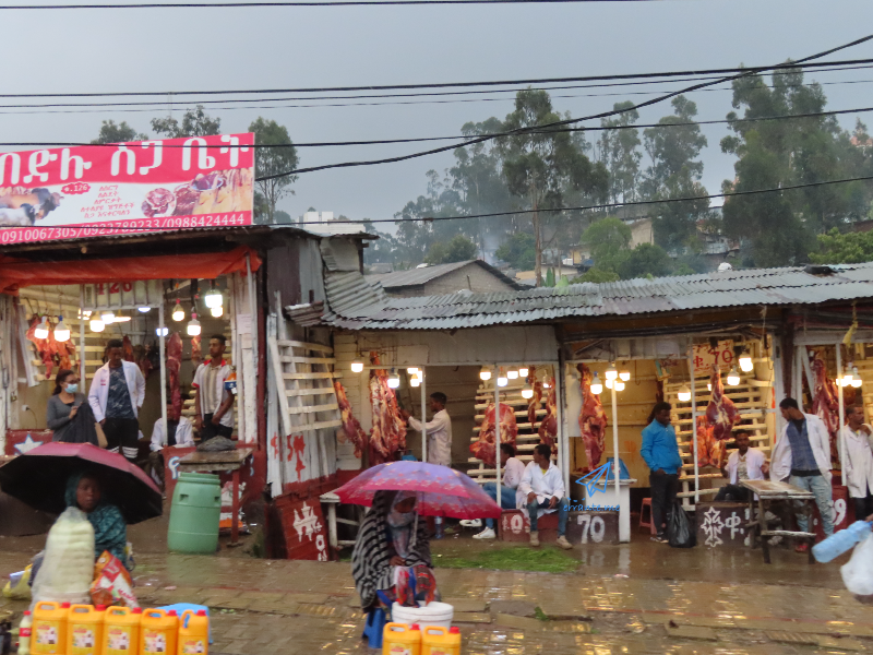 아디스아바바 Addis Ababa 동북쪽, 오로미아주 Oromia state 의 레가다포시 Legadafo City 와 경계를 이루는 지역에 정육점이 밀집한 거리가 있습니다. 작고 허름한 정육점이 줄지어 붙어있는데 환한 전구를 많이 켜놔서 자연스레 눈길이 갑니다.