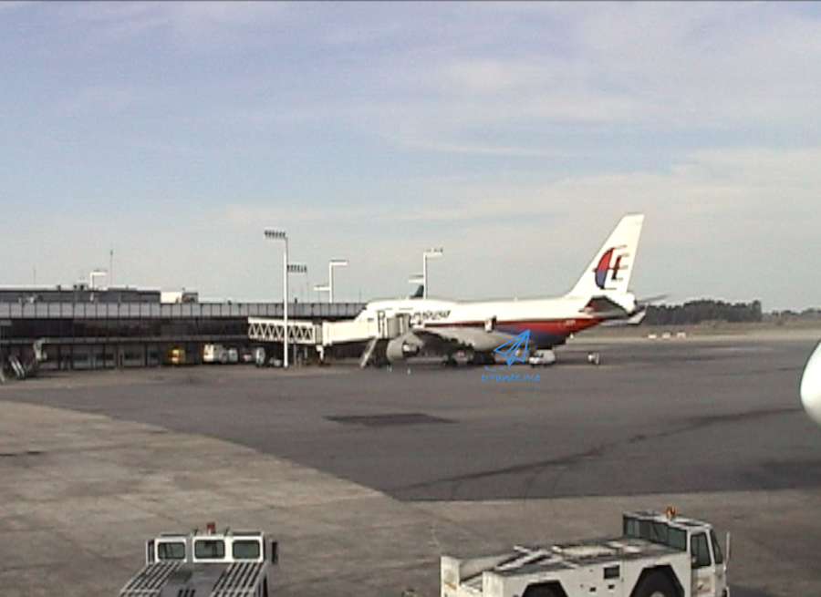 말레이시아항공 보잉747이 말레이시아 - 남아프리카공화국을 거쳐 아르헨티나 미니스트로 피스타리니공항에 막 도착해 주기장으로 이동하는 장면입니다. 비행기 형태는 B747-300 기종으로 보입니다.